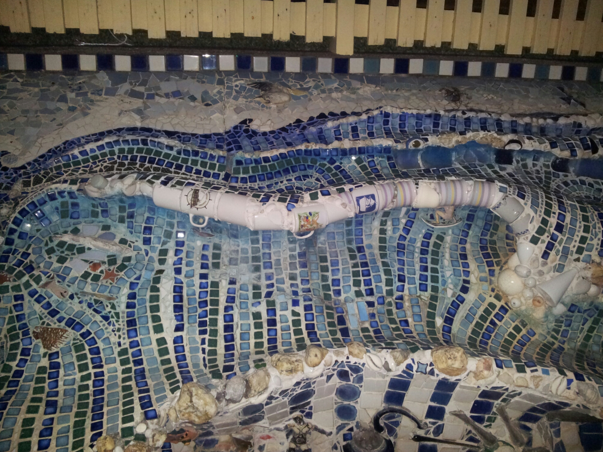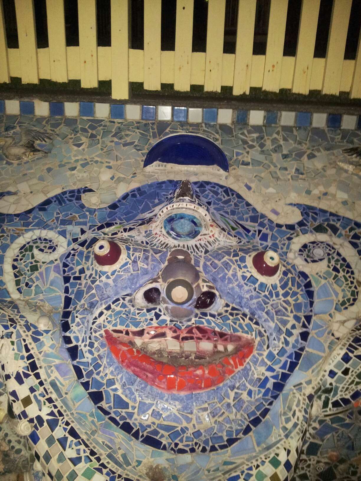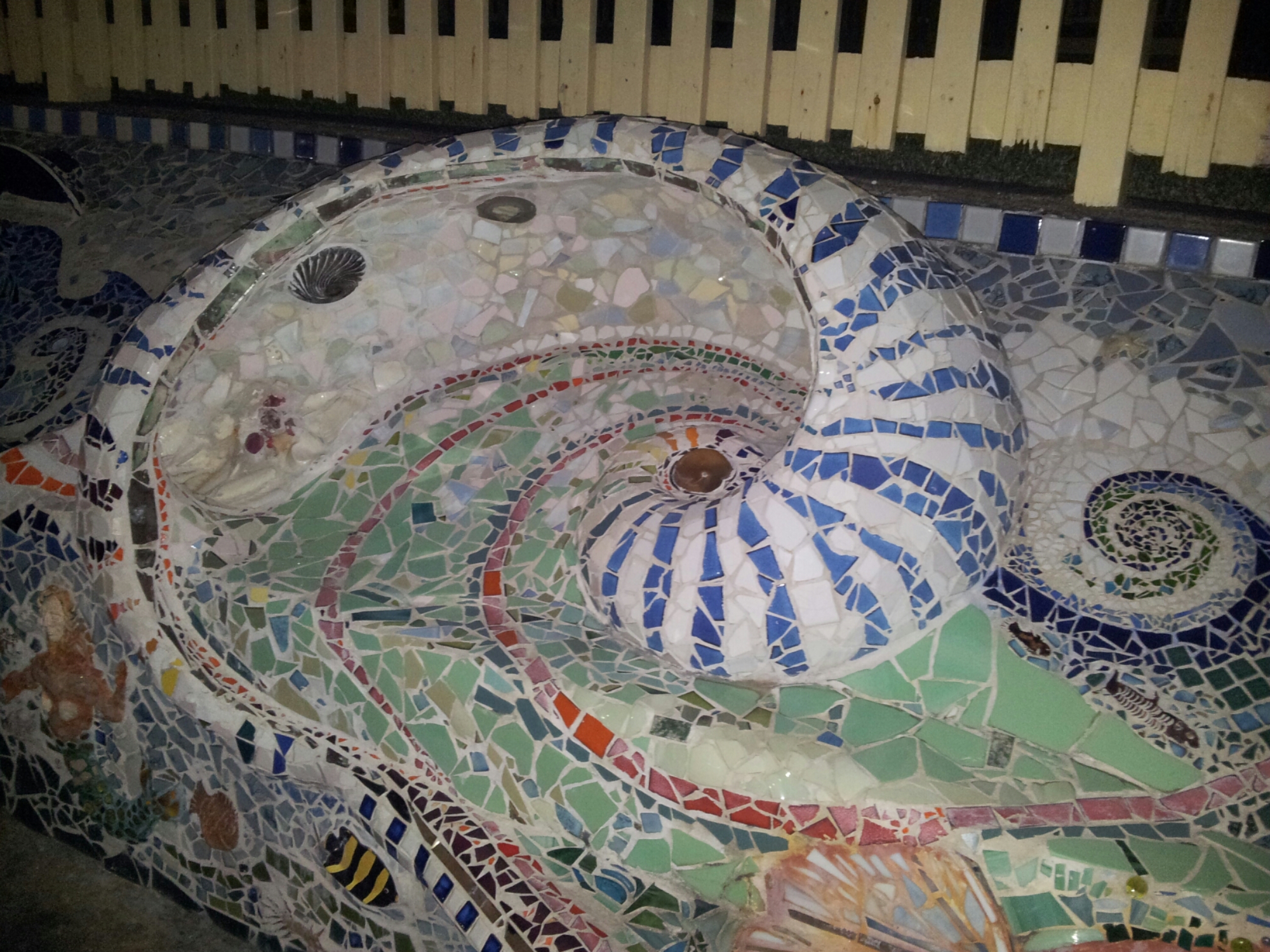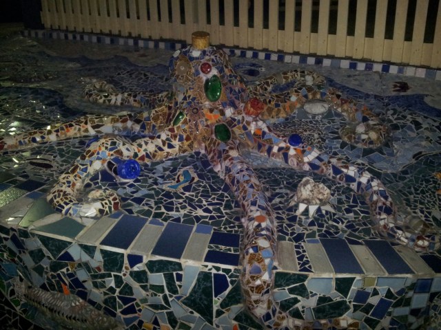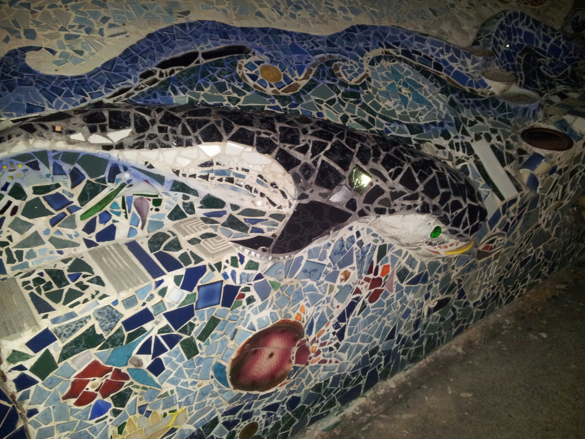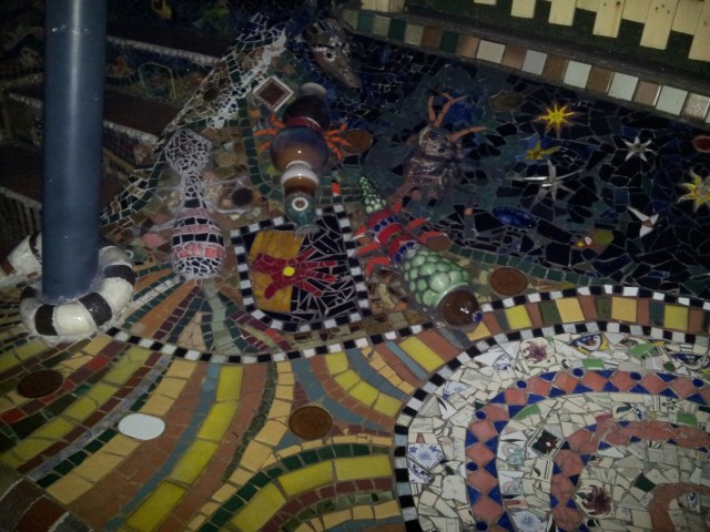 There is the most awesome ceramic mosaic outside the police station.. took photos with the flash, so I’ll leave you with a few of them. No way are we riding back up the hill that way in the morning.. and we need to get on the road reasonably early in the morning.. one of our longest days (100k) to get to Crescent Head (whose fool idea was that?)