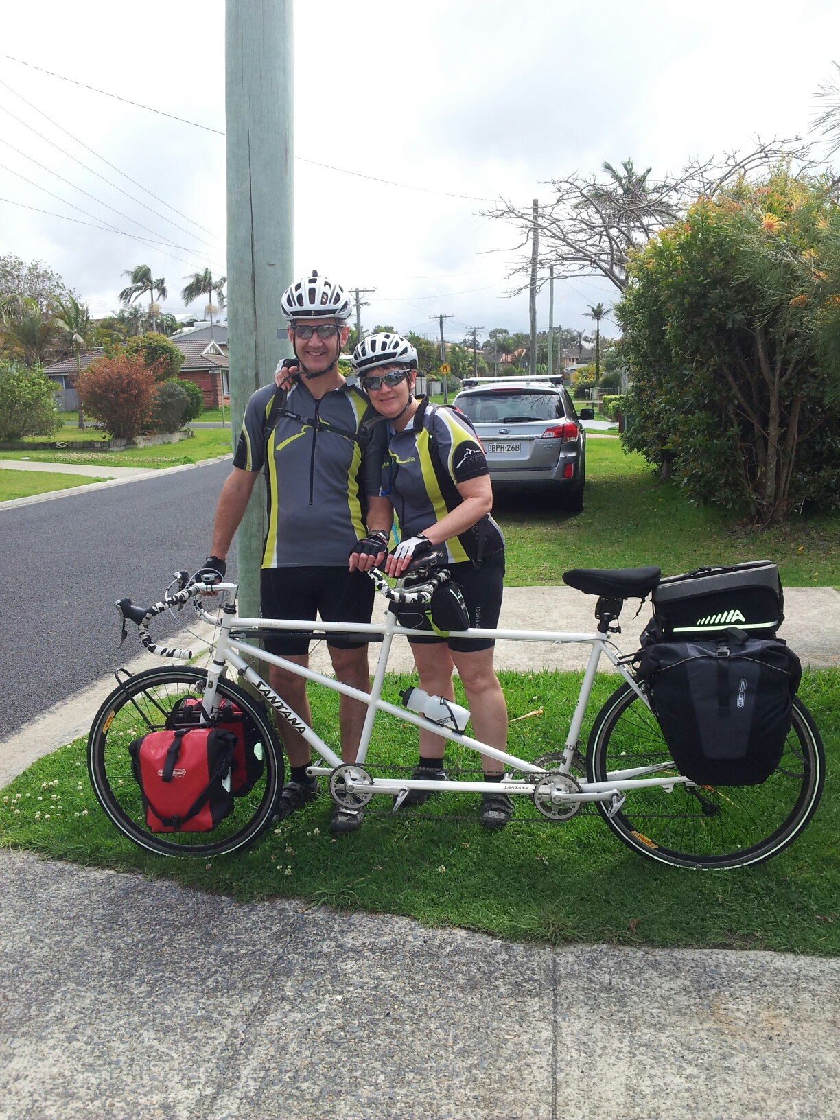 The grand plan is to avoid the highway as much as possible, but for the first stretch familiar territory, we just wanted to get going, and get some miles under our belts, so we hit the highway all the way into Coffs and made a beeline for the city centre and lunch at a cafe. Felt slow and sluggish with all the gear, but we still averaged 27. Faster than I do on my own road bike!