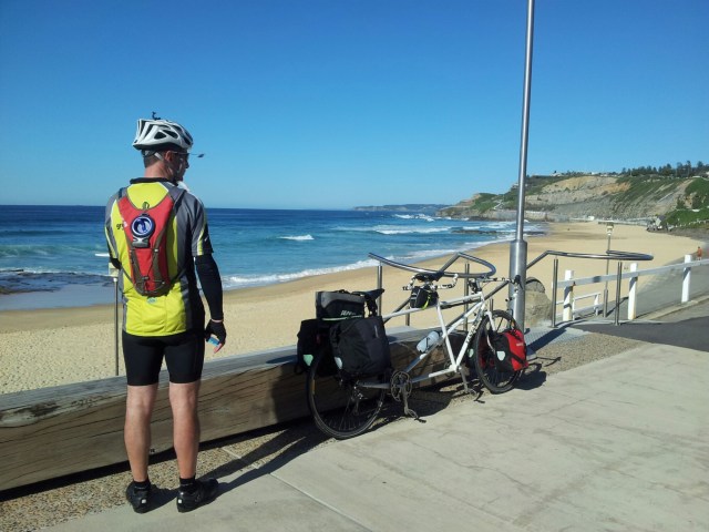 Our original planned destination for today was Terrigal but we were struggling to find motel accommodation there. The night before we settled on Forrester’s Beach, and frankly I was relieved not to have had to pedal even one more metre.