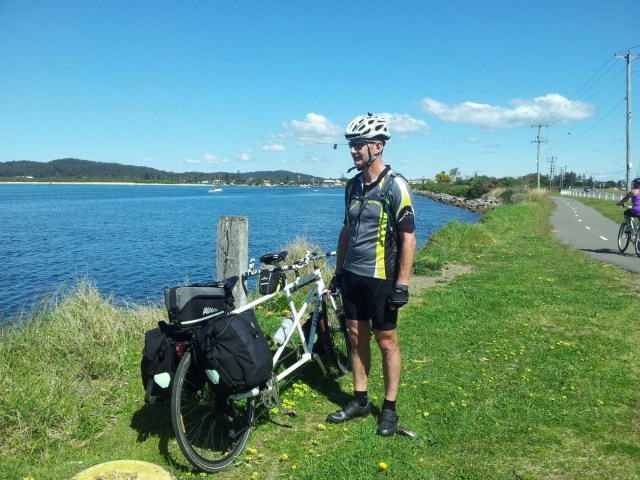 The 16k of the Fernleigh Track is a joy to ride. Smooth hot mix… It is a bit of a grind to the top at Whitebridge – but a hoot downhill all the way to Belmont. We overtook a trio of smart-aleck roadies who had passed us with some flippant ‘haha swap ya’ remarks on the way up. An older guy on another road bike obviously knew the benefits of drafting tandems, and tucked in behind us until we got away from him.