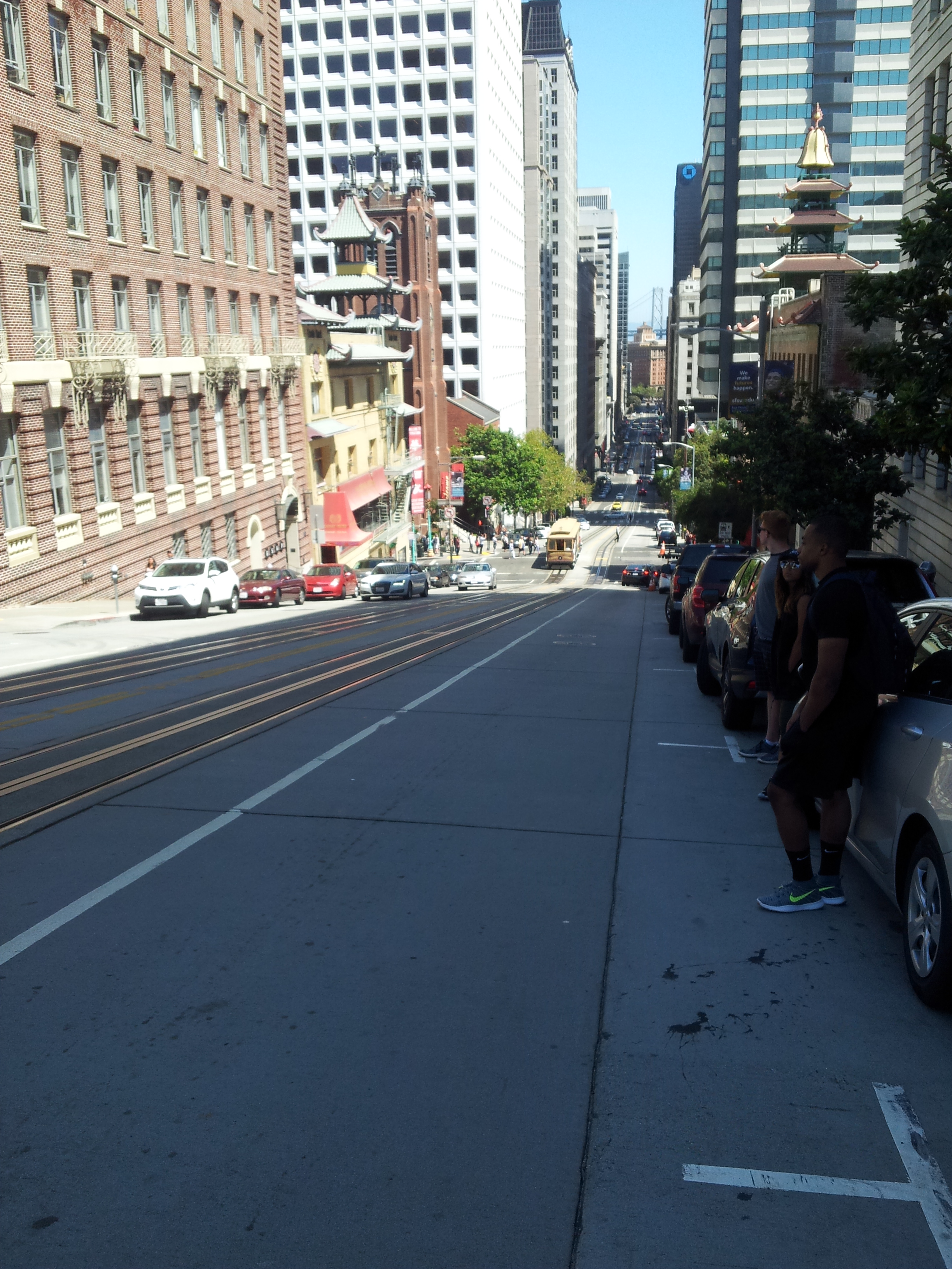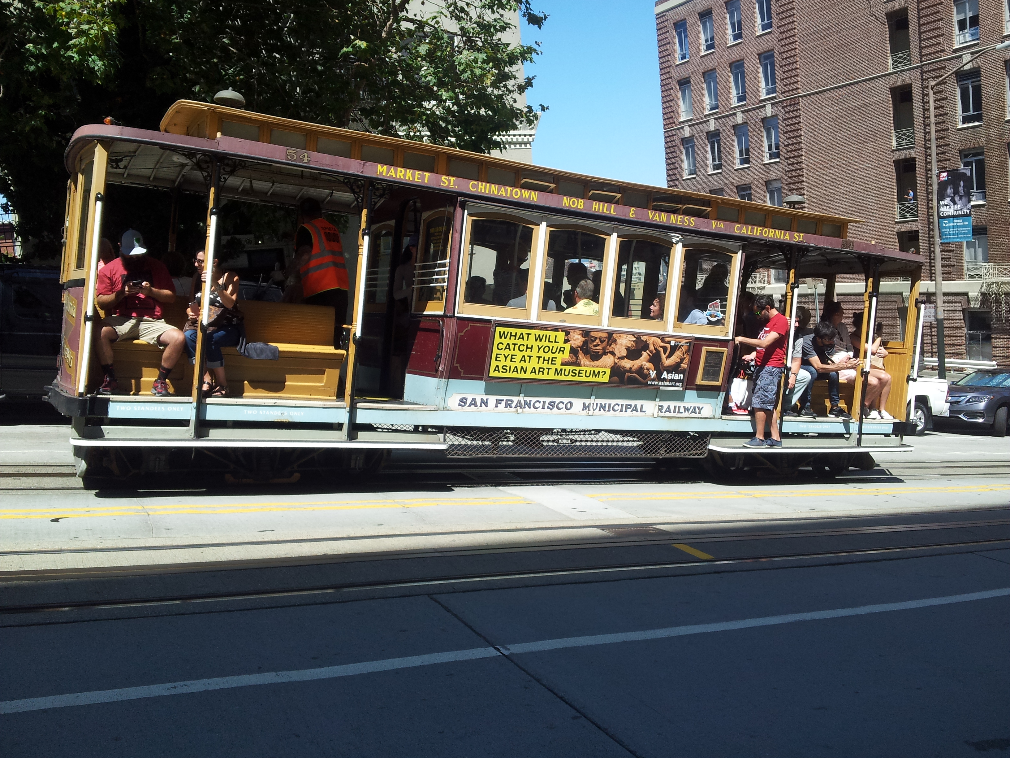 You wouldn’t need the name on the cable car to guess which city you were if you’d been dropped into the middle of the city. All the traffic was quite sedate around town though – either not the day – or the era – for those infamous car chases down those hills. (Or was that all just dramatic licence?) I’ll work on a better perspective photo when we’re back here again in a few weeks.