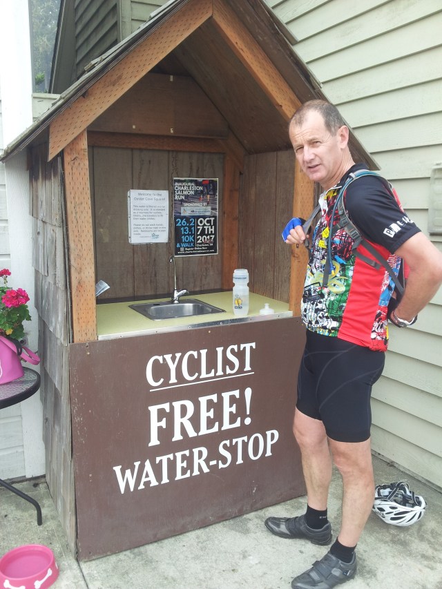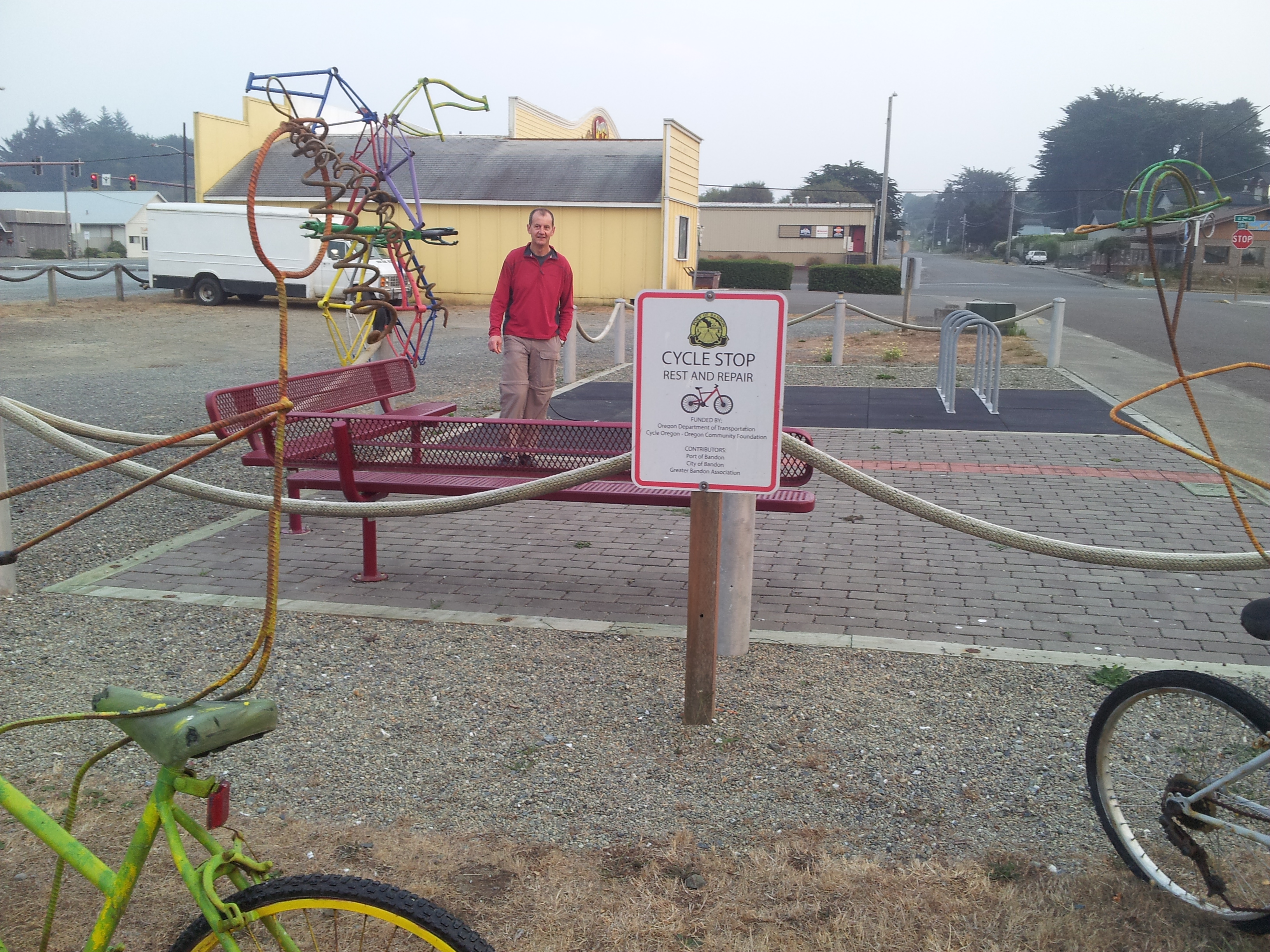 Neglected to take photos of Old Town in Bandon, but it’s kind of arty… and there are a few bicycle “sculptures” around town, including this dedicated Cycle Stop.