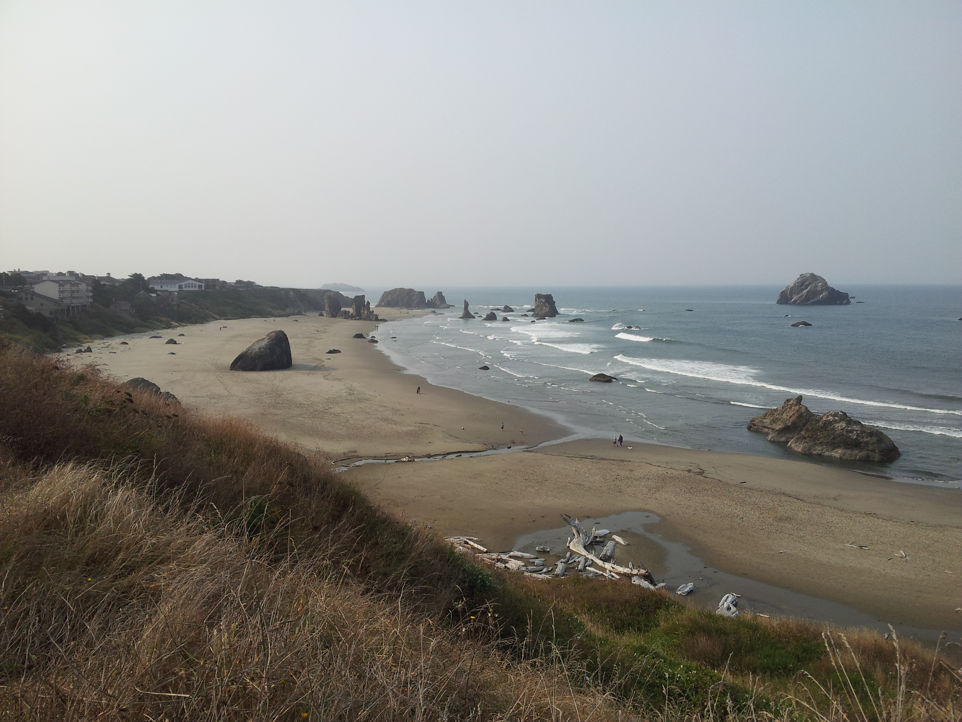 We decided to split proposed 90+ k day into two, which was probably a good thing because today’s 46.5k became 55.6k, so we would have been creeping up over 100k (and one of those was enough!)   While I’m a little bit worried about getting to SF with a few 50k days, it was good to spend a bit of time checking out the coastline.  Bandon, so far, has been one of my favourite places.