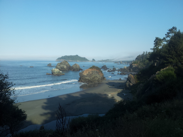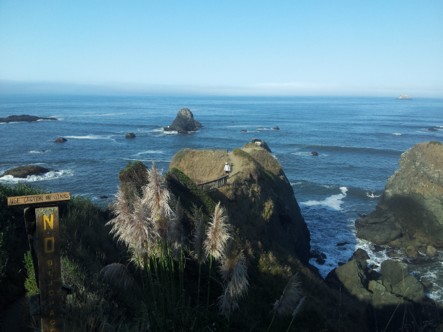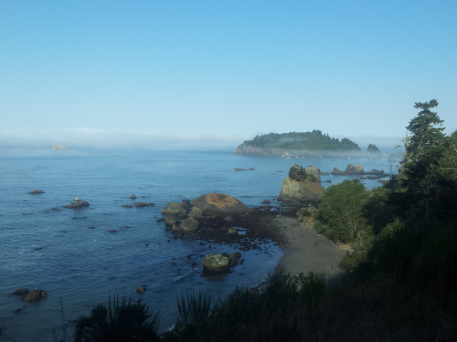 We had spectacular ocean views this morning, after a nervous start when the beginning of the Scenic Drive that was part of our route out of Trinidad had a ‘Road Closed 1.5 miles’ sign. Fortunately we took a chance. It wasn’t closed, and the sun was shining and we finally got to enjoy the renowned coastal views.