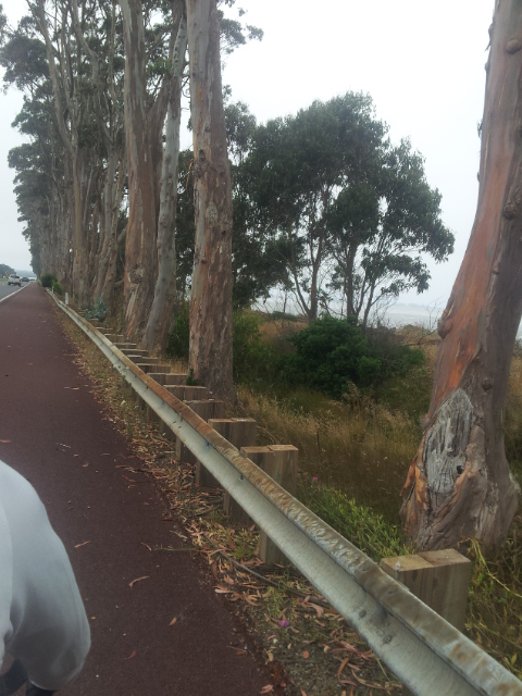 Arcata to Eureka wasn’t much more than 10k, and along the freeway. But we got a dose of home with all these Eucalypts lining the edge of the road!! Possibly Blue Gums, as we could see the distinctive saplings.