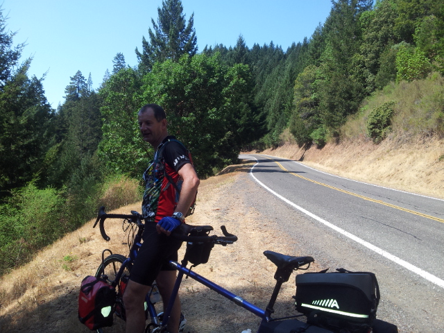 At that first (aforementioned) stop – around Piercy it seems, even though there was nothing there – we met a solo German bike tourer who stopped to chat. We caught up with him again at Leggett, and chatted some more. Loving the people we are meeting along the way.