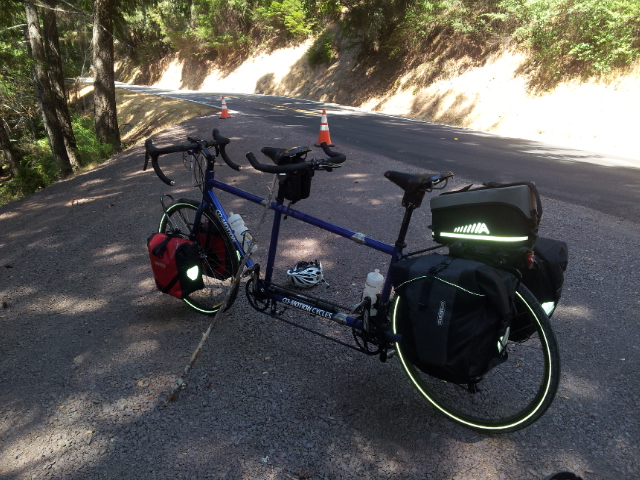 So then the route for the first leg of the day wouldn’t load. As we were pedalling out of town (because we couldn’t get the heck out of Garberville quickly enough, and we also knew we had a huge day with a huge climb ahead of us) I was mucking around with it. Got the course to load with no turn by turn instructions. But, me being me, couldn’t leave well enough alone, and at our first break I decided to end the recording and turn the wretched thing off and on again in the hope it would come good. Nup. Then the course would not load AT ALL. It would get to 99% then beep a Recalculation Error, again and again and again.