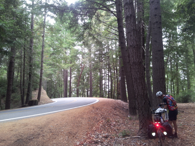 I turned it off and we figured out the rest of the back road options before having to rejoin the 101 to Leggett. And somehow at Leggett (where we fortunately found a great little cafe/kiosk – one that I hadn’t found in my google maps research), I managed to get it to load the course without navigation so that for the big hill out of Leggett I could monitor the elevation screen. Whether that’s a good thing or not I don’t know, but I’m convinced it helps when you have proof that the top is only 100m away. I swear I get a rush of adrenaline in my legs.