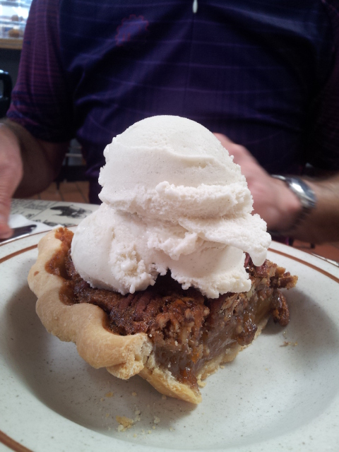 Lunch in Fort Bragg. He couldn’t resist the pecan pie for dessert.
