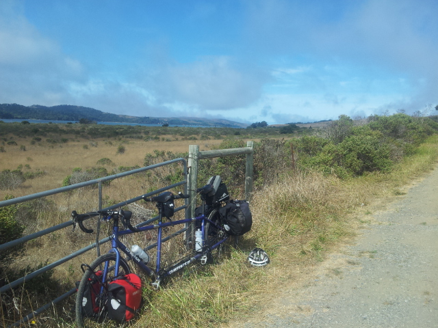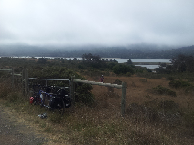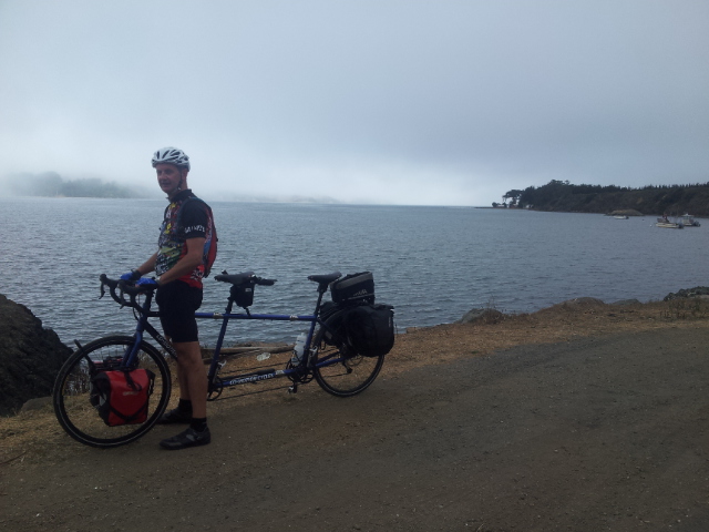 Rode out of the fog again, with a snack stop on the edge of a state park overlooking the water, and and then at the 50k mark found the bustling town centre of Point Reyes Station, and got lucky with a cool cafe that served an awesome beet and grains salad. We were waylaid by a couple of older biker dudes who chatted with us for ages about the tandem, where we’d ridden from, and all sorts of stuff (like the fact that one’s wife had gone to University in Eugene when the movie Animal House was filmed :D.. And the other guy related to Marc about his experiences in Australia in the late 60s!)