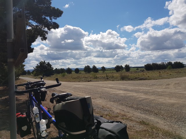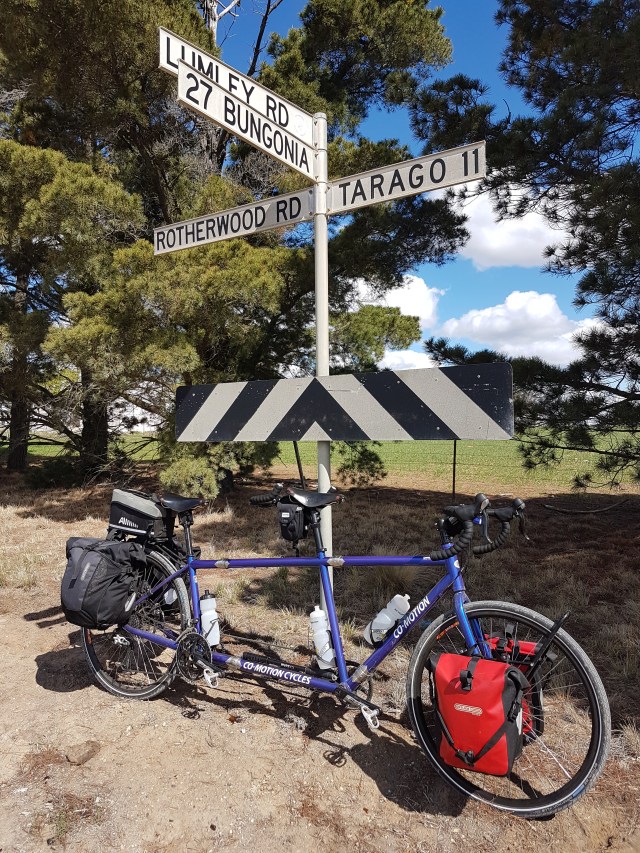 At Tarago. ๐ Bit of an adrenalin boost a few ks out with our first magpie attack of this trip. Bastard came in from the front at first! The worst thing is we have to double back that way a few ks tomorrow morning!