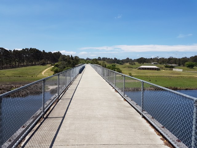 The rail trail crossed a river at Nicholson over a restored trestle bridge. Impressive. And it then, blessedly, was bitumen the last 9k to Bairnsdale.