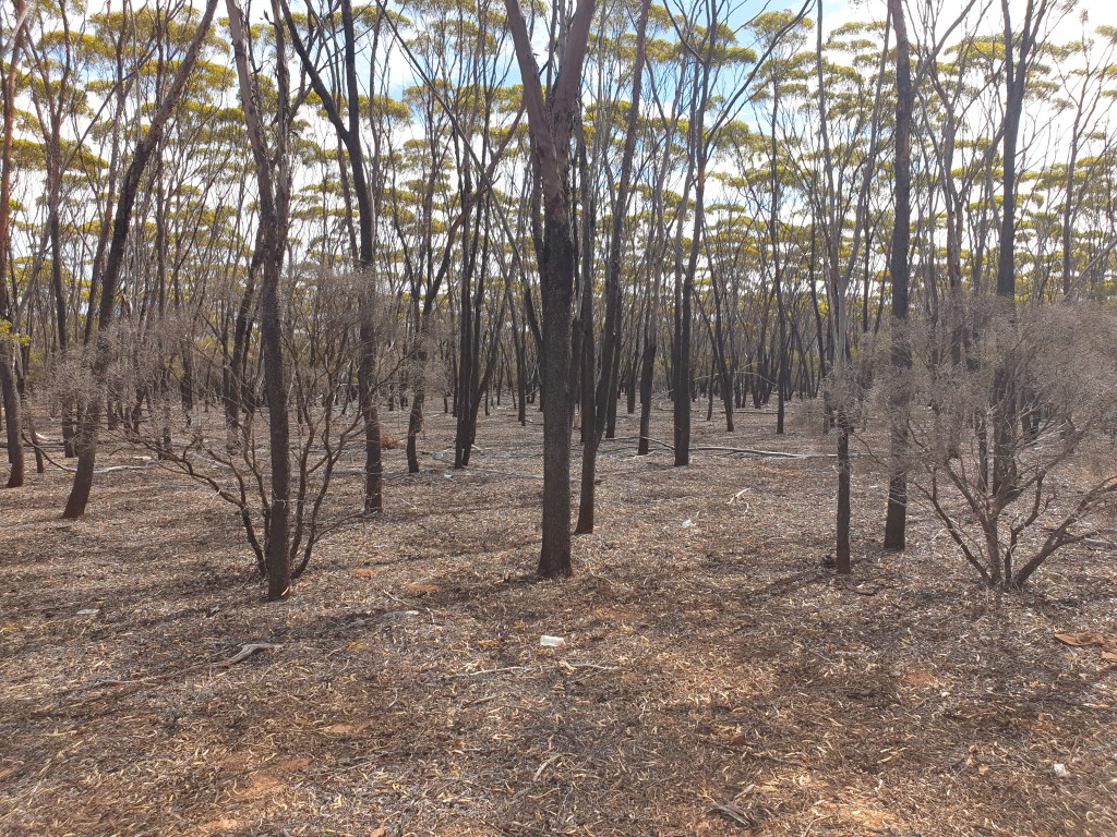 We might have started our ‘Nullarbor’ section, but we were still in woodlands and it was not flat. There was stark evidence in some sections of bushfires (from January 2020)