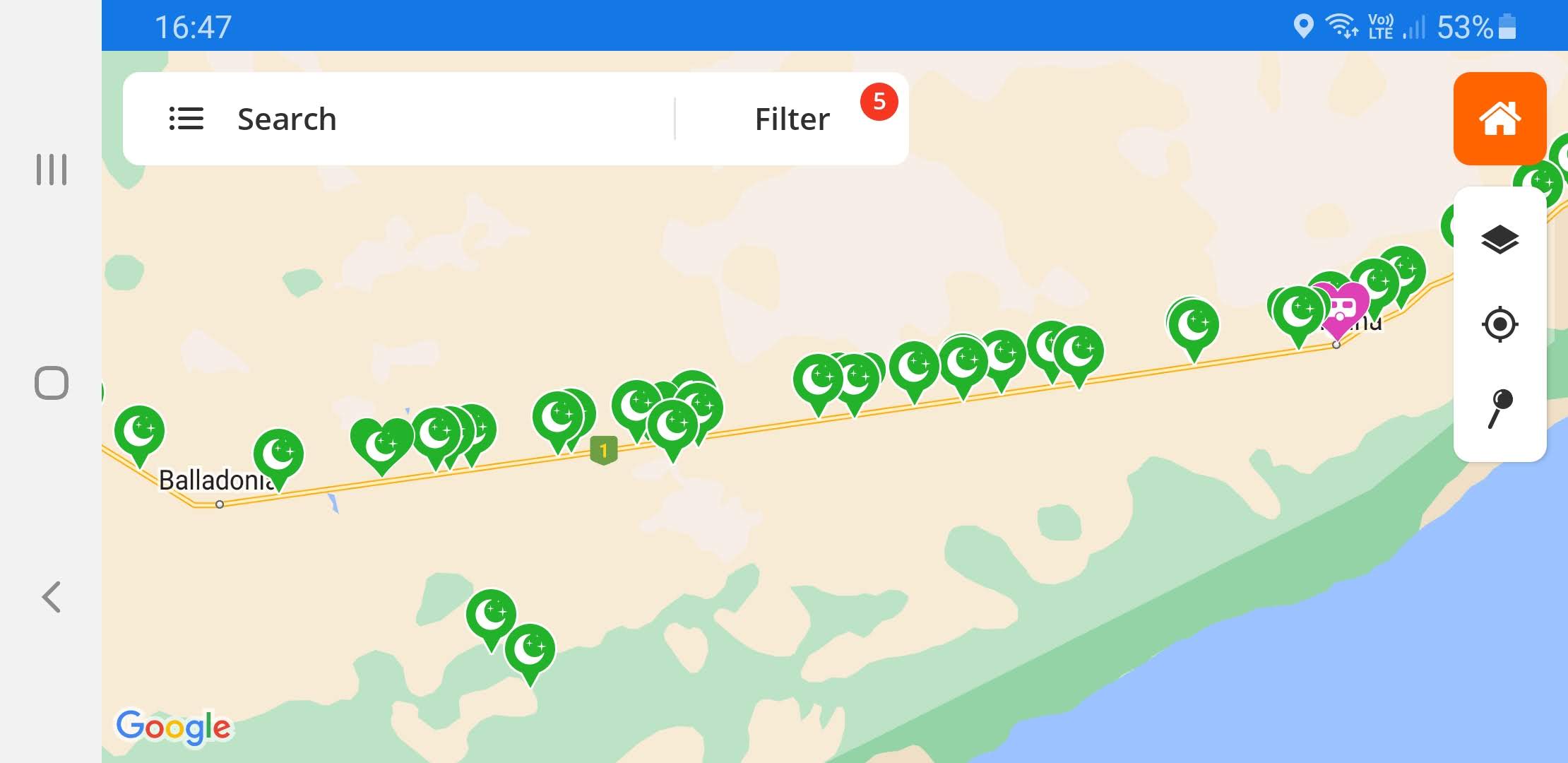 I used the wikicamps app to choose the best options for rest stops.