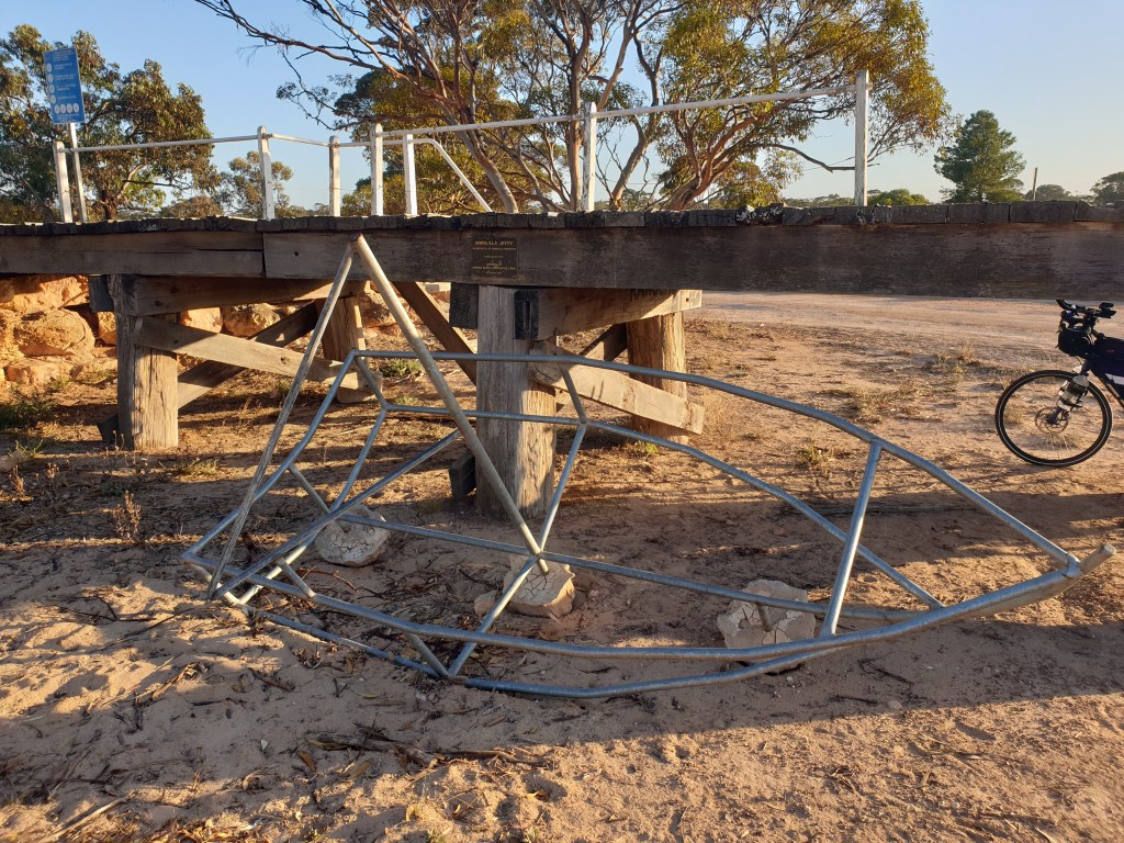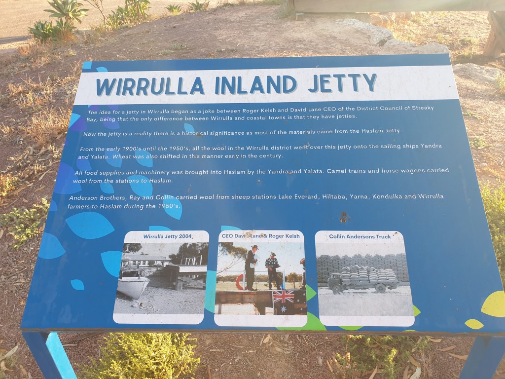 Overnight Marc had googled the ‘Wirulla Secret’, and it turned out to be … an inland jetty. No, I don’t know why it’s a ‘secret’ as opposed to what it really is – a tourist attraction that started as a joke. “The tide is always out.” Anyway, before leaving town we rolled around the block to take a look.