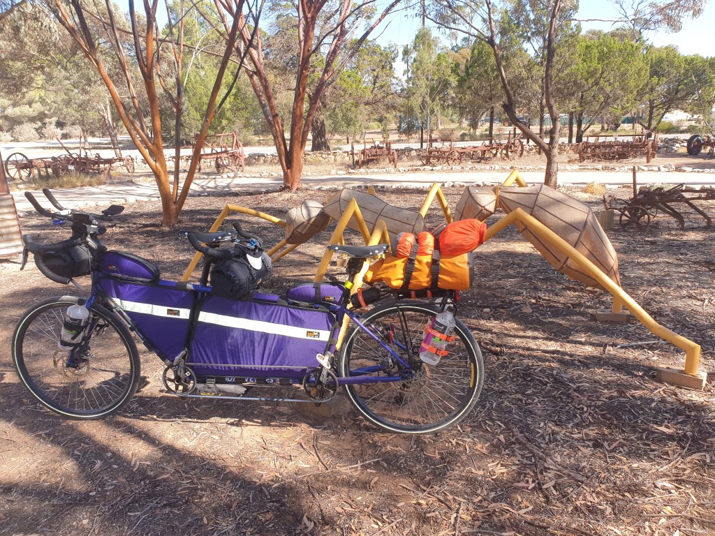The motel room was excellent. We found out where the laundromat was, and fortunately, Marc convinced me it would be quicker getting back on the wretched bike than walking the 600m back over the railway crossing and out onto the highway. As we went to load the washing in we realised that the ladies in the pub (when we were checking in) had given us a bum steer as to how much the machines cost, and we had to ride back to the motel room, scrounge around for another $2 coin, ride back, put the wash on, ride back over to the bakery before it shut (to stock up for tomorrow)… then back to the laundromat, and, phew….