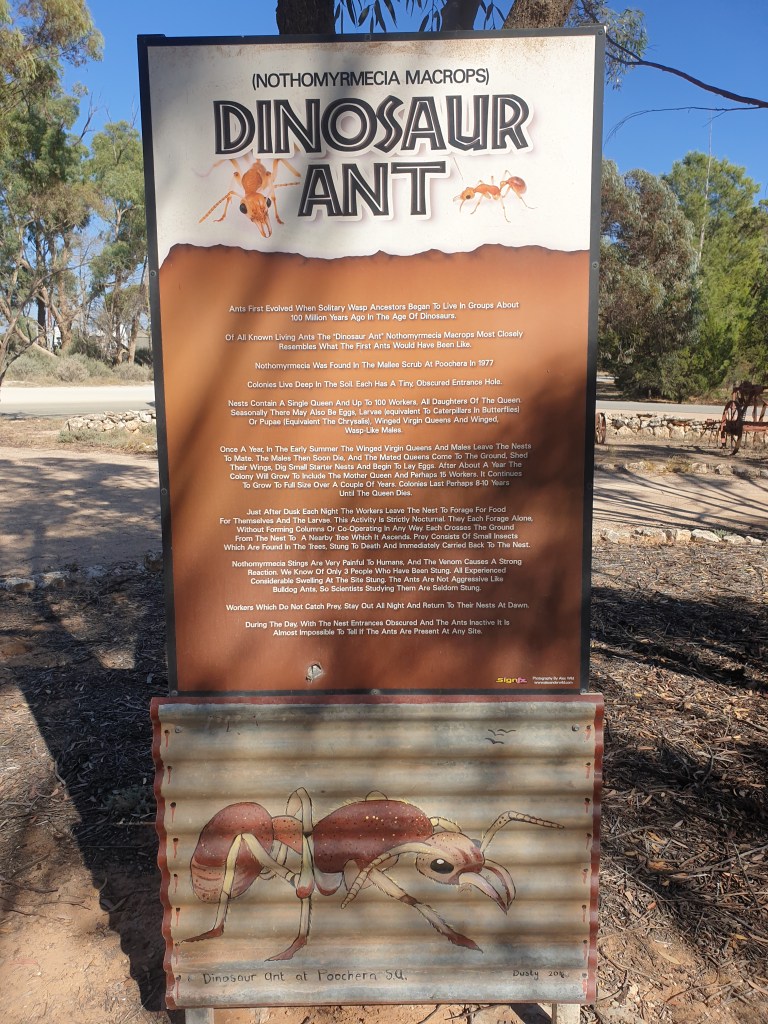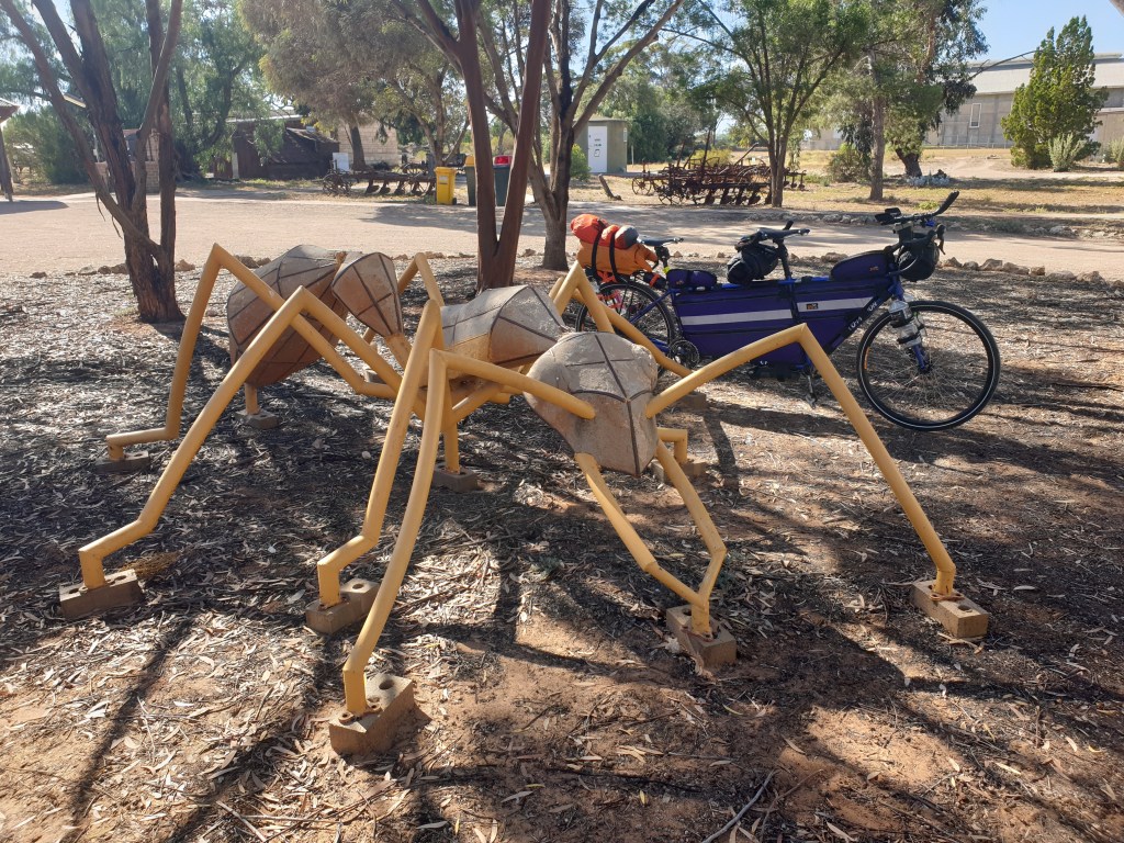 We made pretty good time to Poochera, 47km away, and pulled up in the local park for a food and loo break. I also wasn’t going to miss the Dinosaur ants sculpture there!