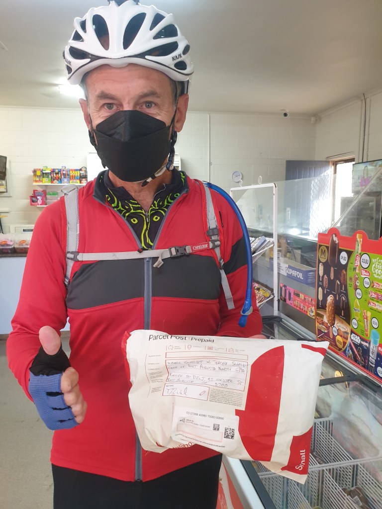 We then had a bit of an errand to complete which had been a few weeks in the making – a ‘care package’ pick up at an Australia Post agency in Port Augusta North, sent by good mate Malcolm. This plan was hatched back when we were still on the Nullarbor after Marc’s Lezyne died in Balladonia. Malcolm offered to post over his spare Lezyne – exactly the same model – and built up a package of other stuff – including a spare derailleur cable, and some ‘butt cream’. (Back on the Nullarbor, with our butt issues, Marc was worried we wouldn’t make it to (a bike shop in) Adelaide on the chamois cream we were carrying.) Deciding where to send it within a realistic time frame (of both our riding and postage time) took some debate between the two M’s over Messenger. (A bit over-optimistic of them, I thought at the time, given I was dreaming of calling it quits in Adelaide.) The Australia Post agency in a corner store in Port Augusta North was open over the weekend (but only till 2pm) so that was the chosen destination, with, then, our timing in and out of the city involving parcel arrival/pick-up logistics.