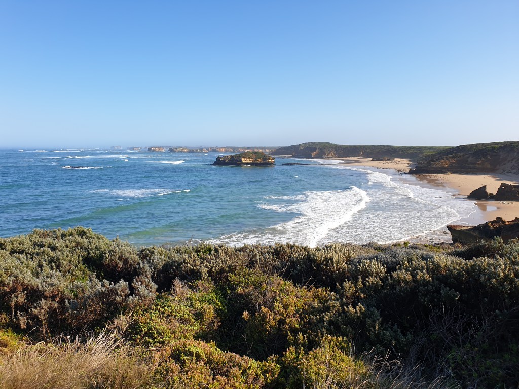 We got away at 6.15. It might have been a reasonable temperature of around 15 degrees when we left the motel, but it dropped to about 3 degrees (‘feels like 2.3’!) within about 10km as we made our way over the river and along the bay! It stayed that cold as we followed the backroad back up north to Allensford (near the highway) and then turned south onto the Great Ocean Rd.