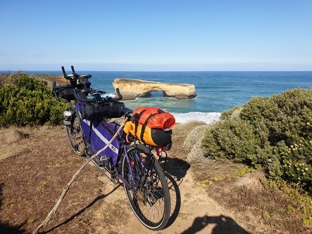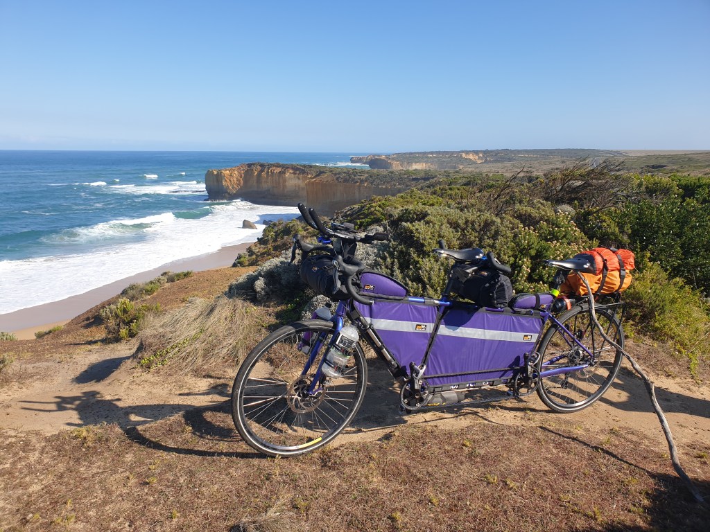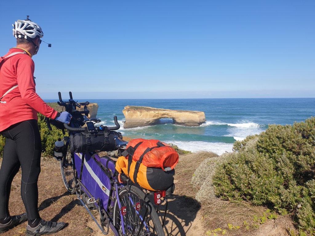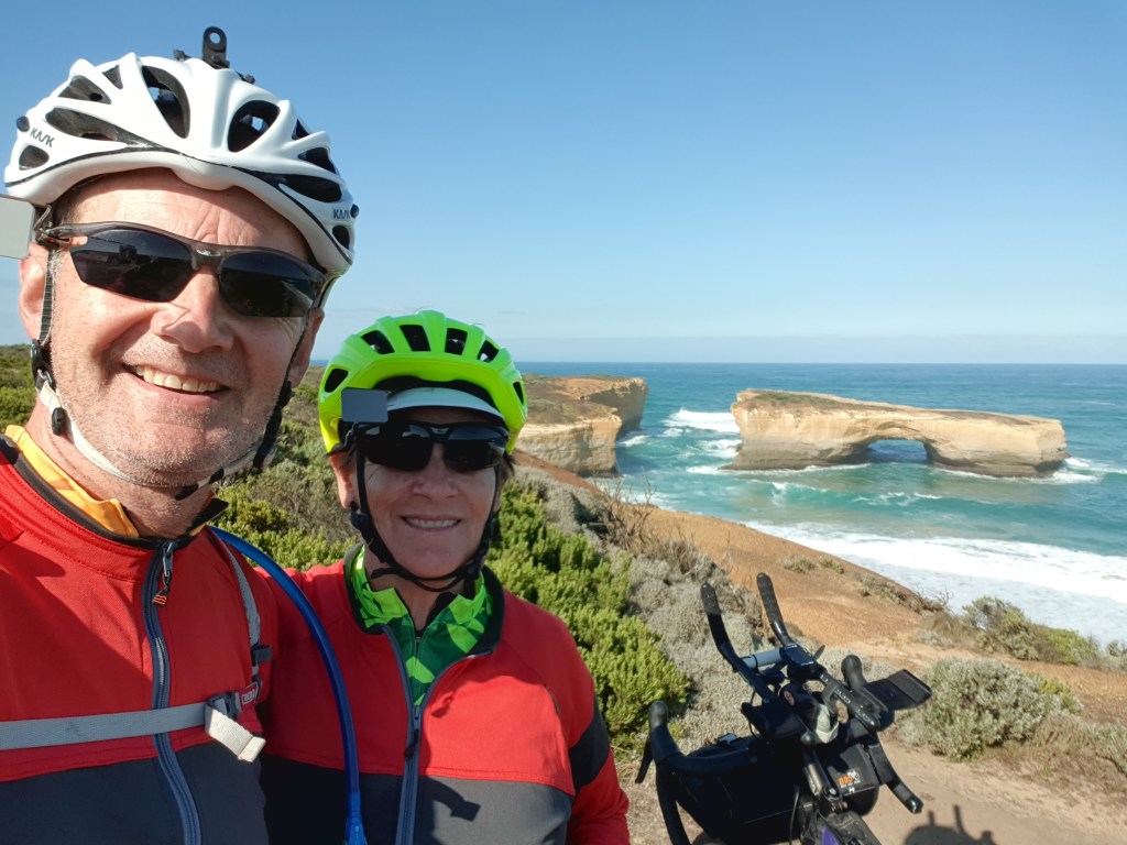 It was then only 10km to the visitor centre, but as it was our last toilet stop option, we made use of that, bought cold drinks, and ate our lunch outside amongst all the tourists, and the second-hand cigarette smoke from employees standing out the side on smoko. We skipped going across the road and down the crowded path to the Twelve Apostles lookout – cycling not permitted. It’s a bit of a shame, in hindsight, but at least had already seen them – 35 years ago! We still had about 40km to go, and much of it was climbing.