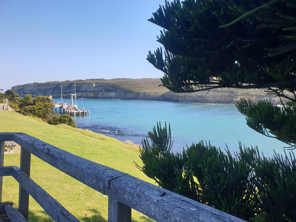 Next stop, Port Campbell, at the 69km mark. It was a bit early for lunch, and not that long from the ‘brunch’ at Peterborough, but we knew that the only food option between here and Lavers Hill was the visitor centre at the Twelve Apostles. We bought some sandwiches and cake to take with us and rode down the street a bit further to check out the actual ‘port’ (very pretty)…