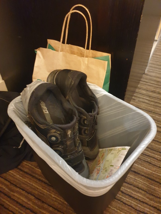 Bin time for the old shoes, but not before removing the cleats and putting them on my new shoes – in the right spot! It was, of course, a risk for bike set-up to be heading out on these long distances with new ‘equipment’, but it was the better option than risking the life span of duct-taped ones.