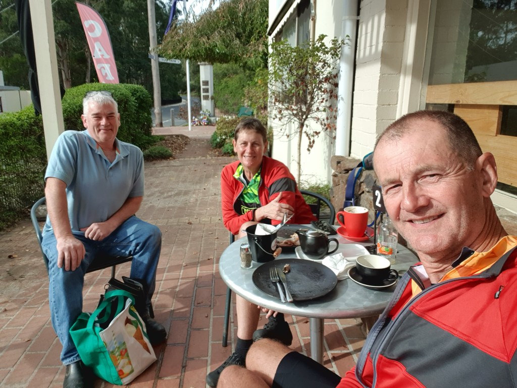 We rolled into Noojee at about 9am. 41km. Again I was thankful that we had ridden that section in the early morning and not late afternoon yesterday.