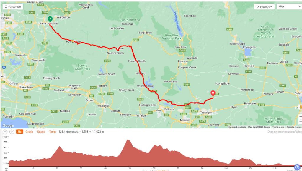 Another hour saw us into Yallourn North. We’d left the Baw Baw foothills and were now skirting around the northern edge of the Latrobe Valley – known as the centre of Victoria’s (brown coal) energy industry (mining and power stations.)