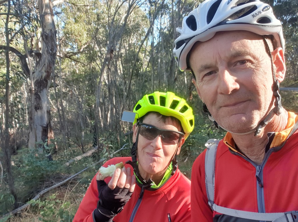 With all the ‘H for hard’ gradients done, we stopped for a break at Buckety Plains. A Parks Victoria vehicle pulled up, and the rangers got out to have a chat with us. They were nice. They both did a bit of cycle touring too.