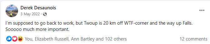 With our ideal plans to have stayed at Anglers Rest (11km from WTF) foiled, we needed to start EARLY.