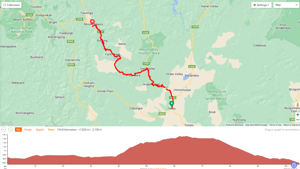Tomorrow we were headed to Beechworth – around 100km, with two separate climbs.