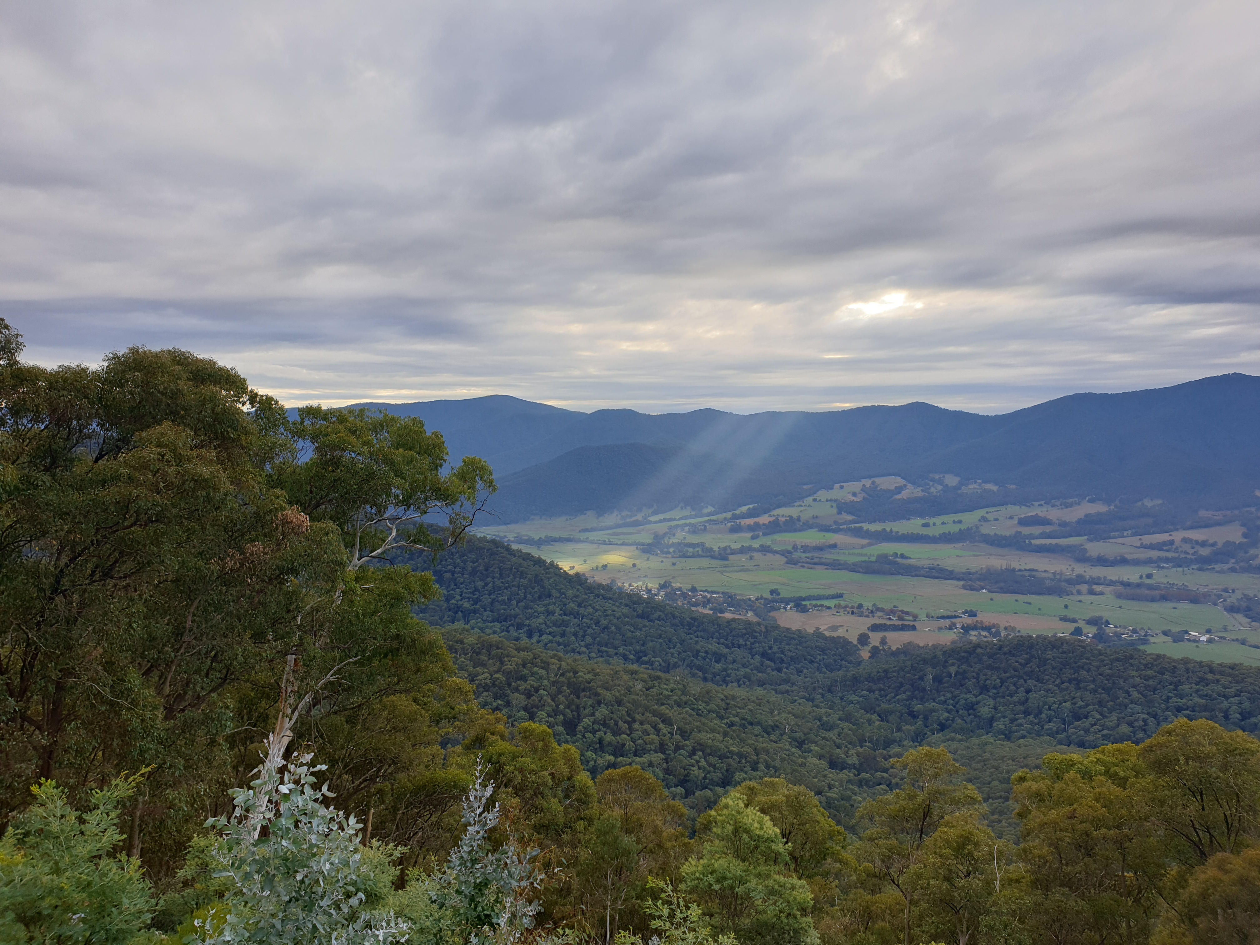 We found a cafe and tucked into breakfast. We had a tentative date with Emily and Jake – we’d all but finished when they finally made it after checking out of their accommodation. After coffee/tea with them, we got some rolls made up at the bakery next door, and finally headed out of Bright an hour and a half later!
