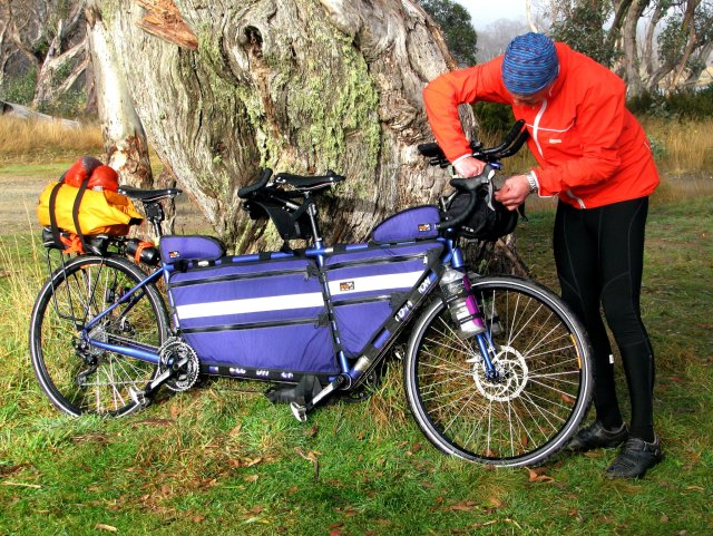 We faffed around fitting everything in, and then finally headed off at 2.15. Bobeyan Rd was only 1km up the road. It was paved for about 8km, then we hit the dirt. (Better get used to it, there’d be a lot more of it tomorrow.)