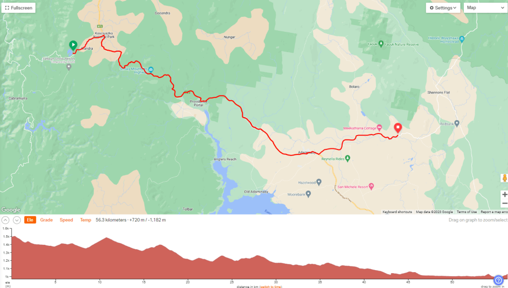That, and Connors Hill, a few k’s on, were the longest, but there were still some other pinches. Eventually, the bumps got less and less, and we could feel that it was, on average, downhill now through to Adaminaby.