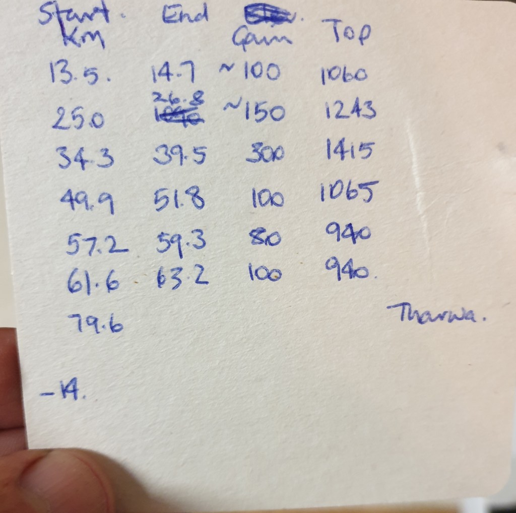 10 past 7 departure on a pretty overcast day. We knew it wasn’t going to be easy. Quite a bit of climbing. And about 35km of dirt. Last night Marc had sectioned off each climb, as he had done for BOF and Cabra – although he didn’t do the gradients. It was really just to confirm and then mentally tick off each ‘summit’ as we reached it.