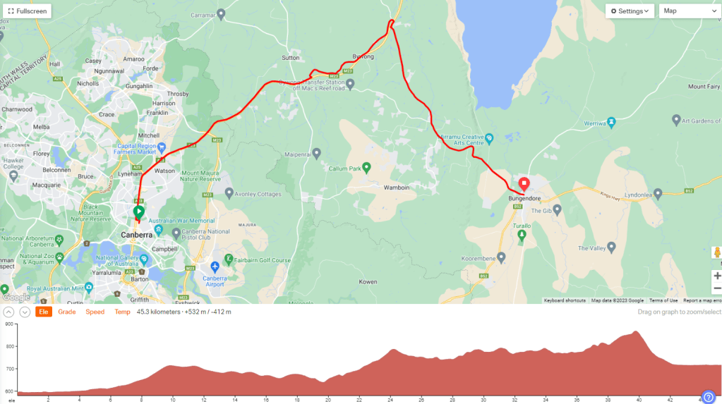 I maintain, however, that even if I had known, I still would have insisted we stop in Bungendore. My reasoning above about staying alive to finish still held. It was too dangerous.