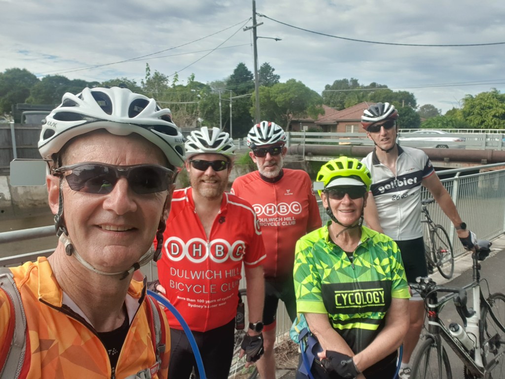 Just after we’d crossed the Princes Highway (yep, there’s that Princes Highway again!) up pops a dotwatcher! It was Unkle Erik (the dotwatcher who liked gauging stations and hydrography in general). He usually greets the riders as they come through Sylvania, but he had missed us last night. We missed the opportunity to get a pic with him and his wife – but he took photos of us.