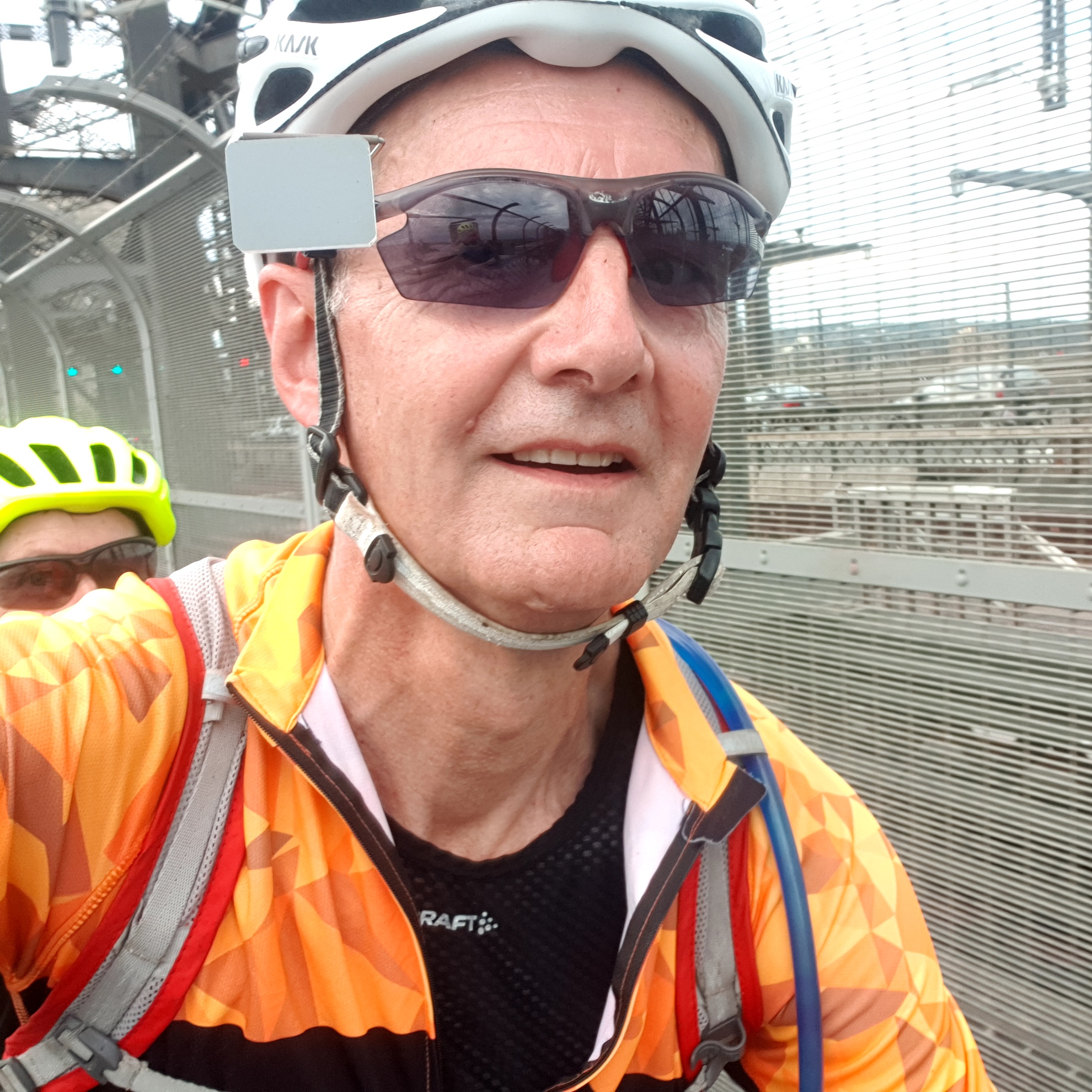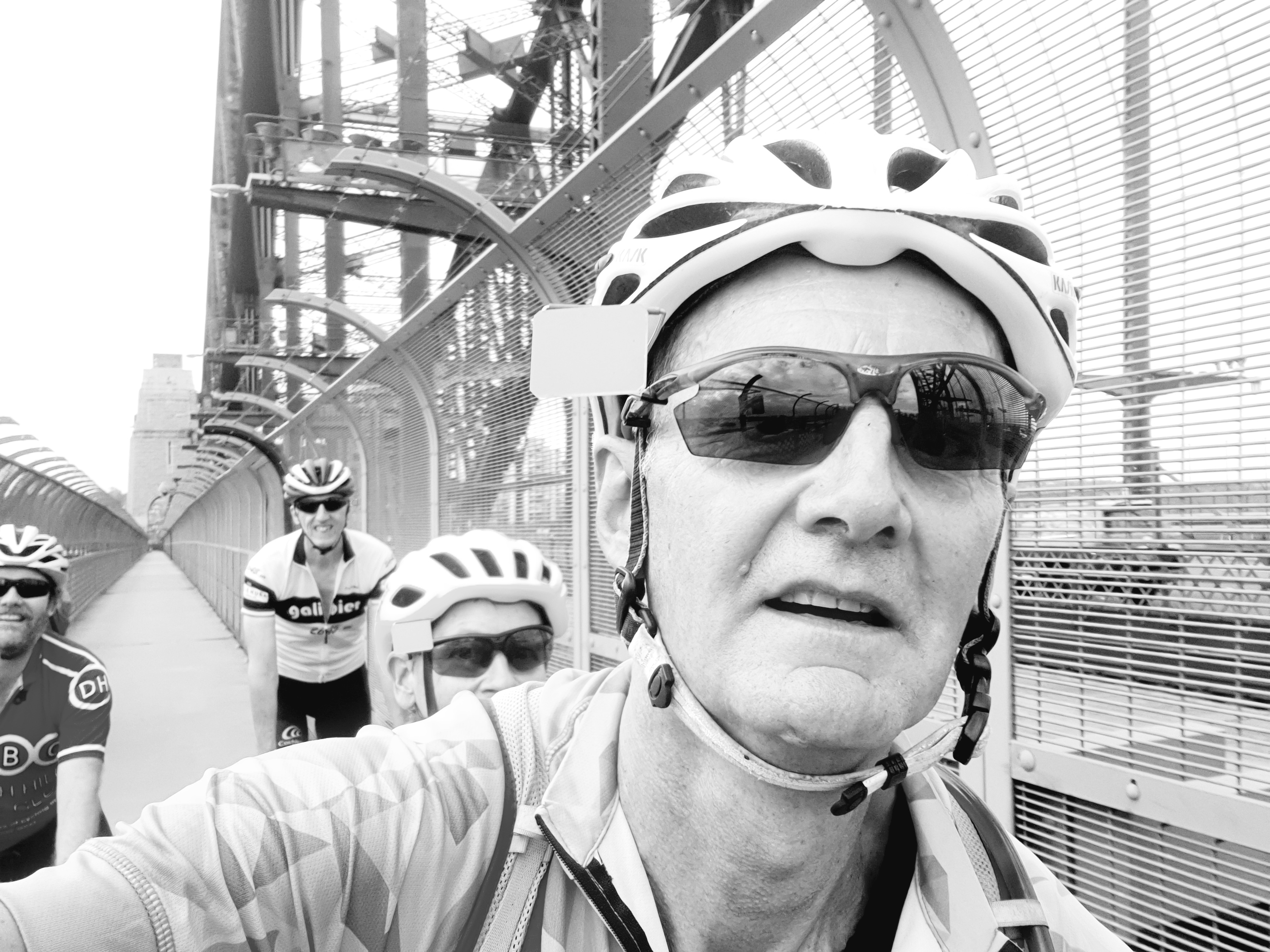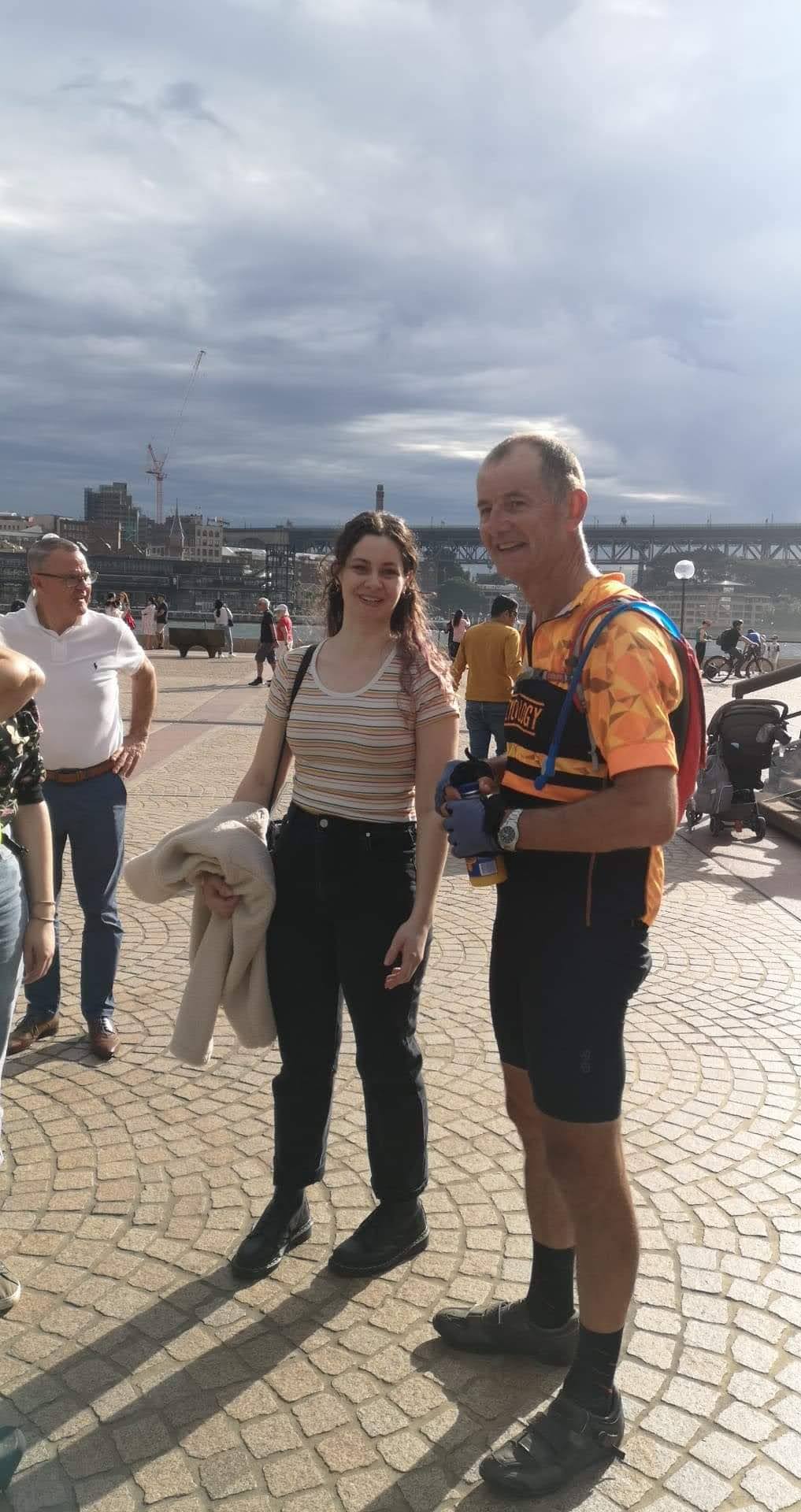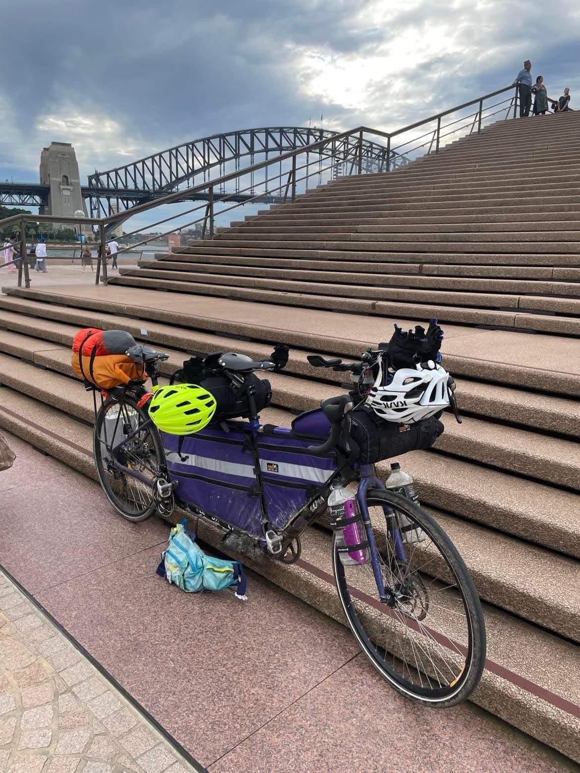 With the tandem too heavy and cumbersome to risk the traditional front-wheel dip into the harbour off the stairs, we loitered around the Opera House forecourt for a while but eventually said our thank yous and goodbyes to everyone. We couldn’t thank Malcolm and Roger enough for having spent their whole day with us, and taking the stress out of the navigation. We are very lucky to have dot-watching, cycling friends share our last day! Malcolm messaged us later to tell us he got lost going home! Just as well he saved all the navigation for us!
