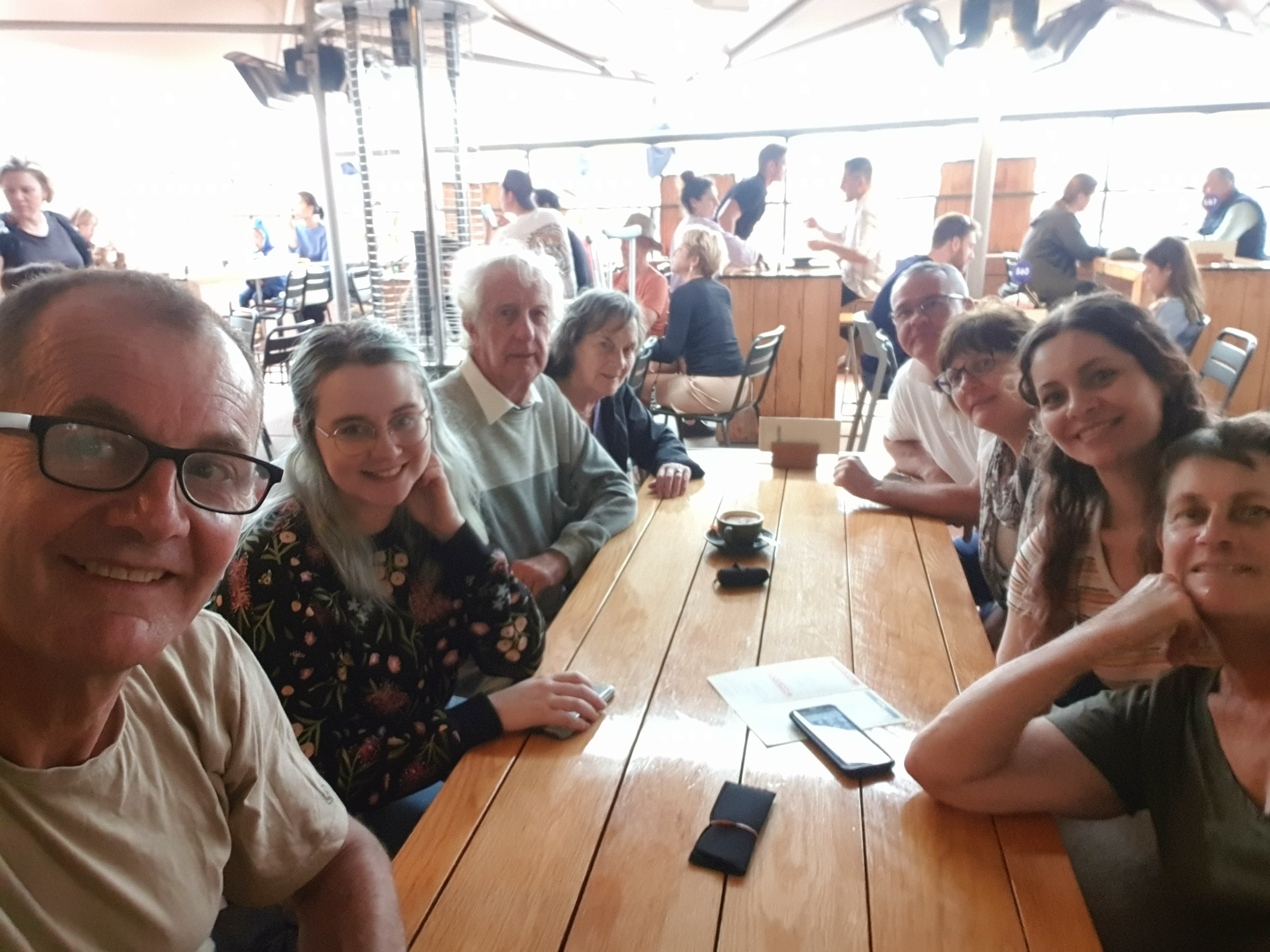 There was Roger’s son, Richard, who had ridden in (whether to just ride home with his dad, or to say g’day to us I’m not sure!) And Mark D, aka Rotovelo across Australia, also a dotwatcher, who rides a velomobile. …… and who set out on Indipac 2023.