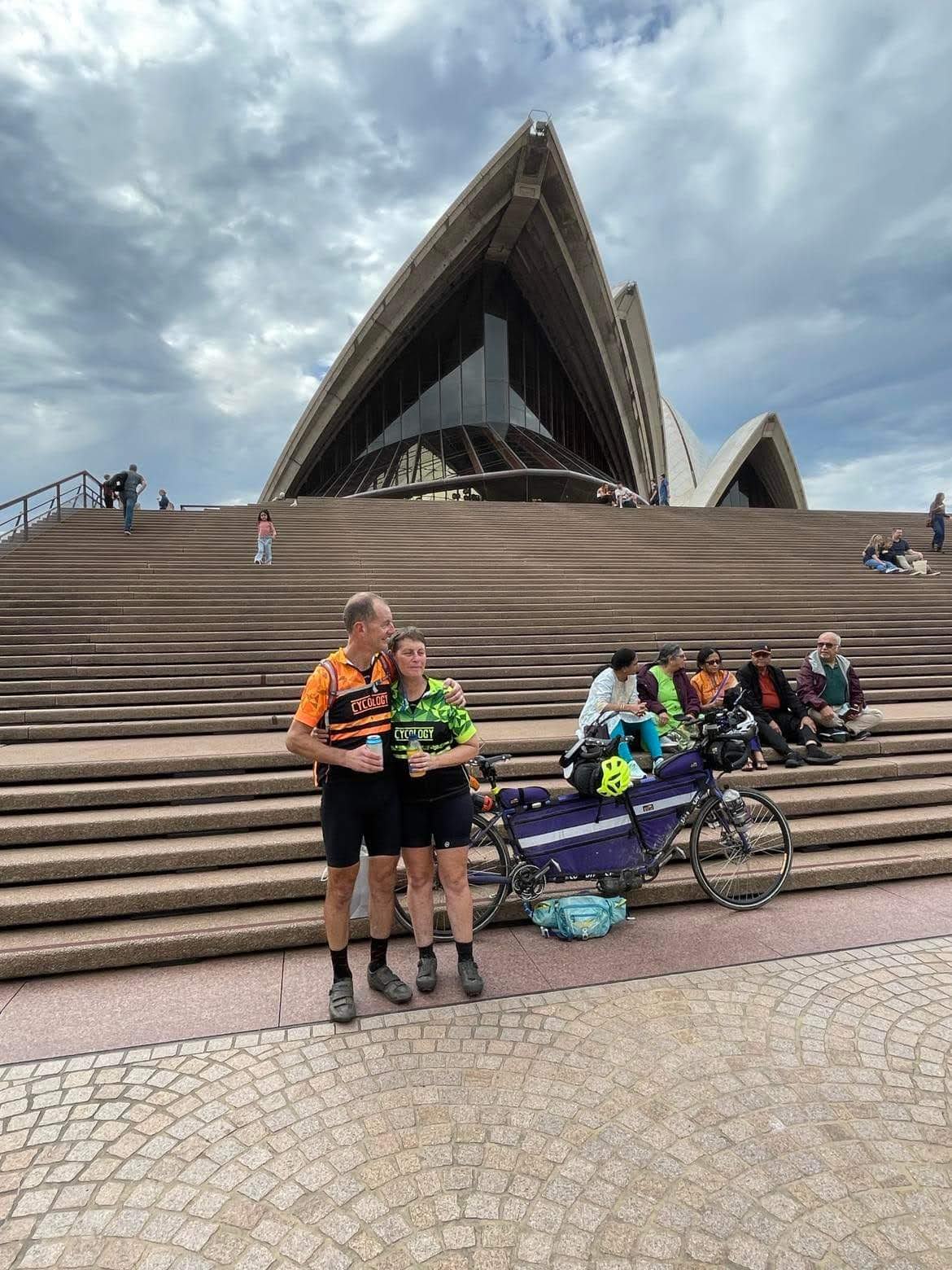 My parents were there, looking like Ma and Pa Kettle – sadly we could see the progress of the dementia in the two months we’d been away. Neil, my sister’s husband, had had to go find them as they got off the train. Mum clearly didn’t fully grasp what we’d gone through: “But did you enjoy it?” Too soon, Mum, too soon. Marc propped the tandem at the foot of the Opera House steps, but Dad managed to knock it over while he was ‘looking’ at it. (sigh!)